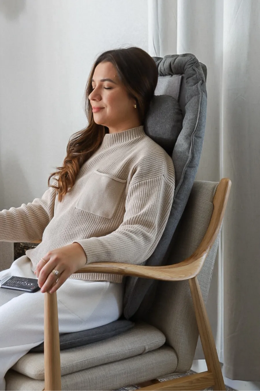 “The heated device has helped her most with her recurrent muscle pain, our expert says.”