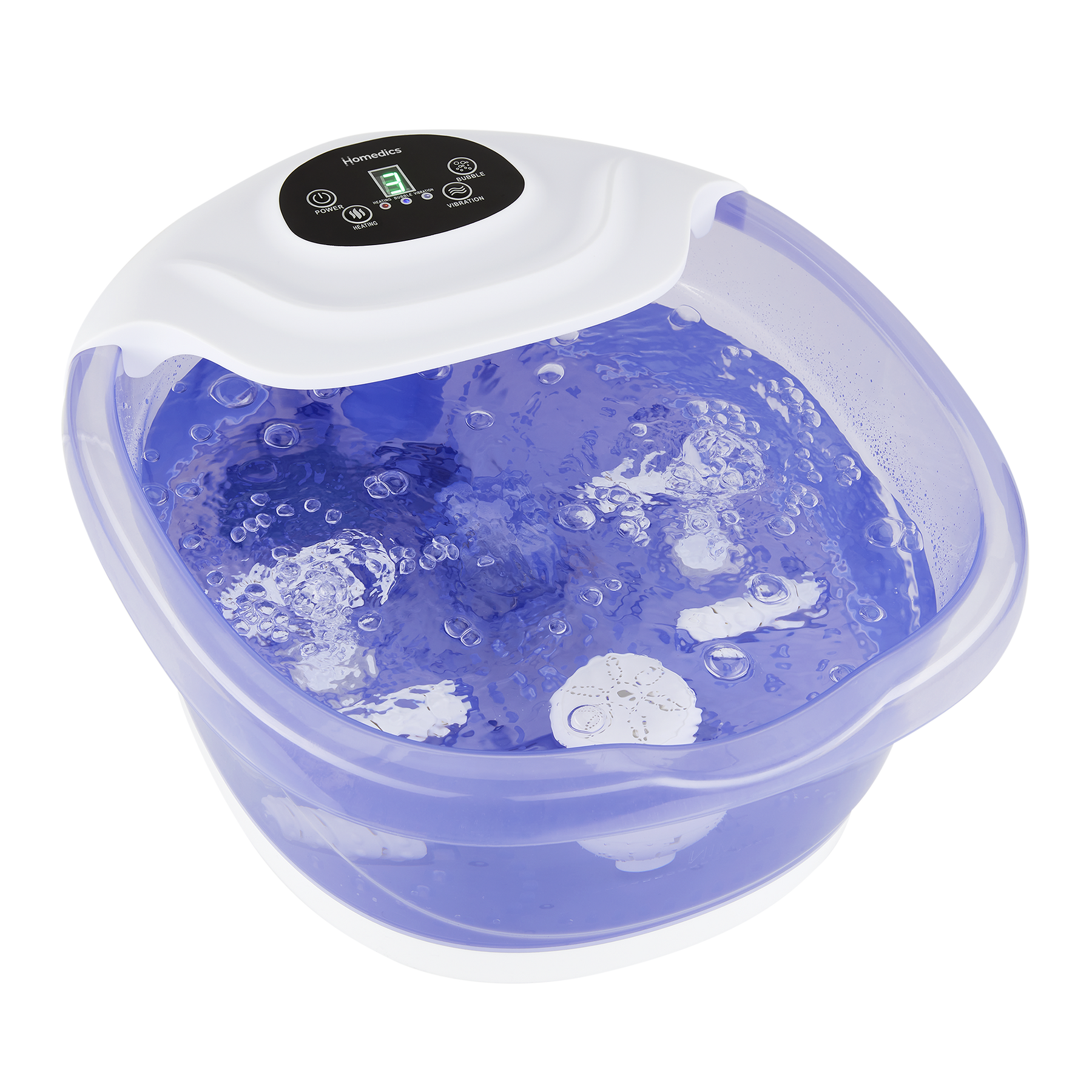 Enjoy a soothing foot soak with the Homedics Salt-N-Soak Footbath with Heat Boost. Featuring soaking salts and bubbles for the ultimate a-home spa day.