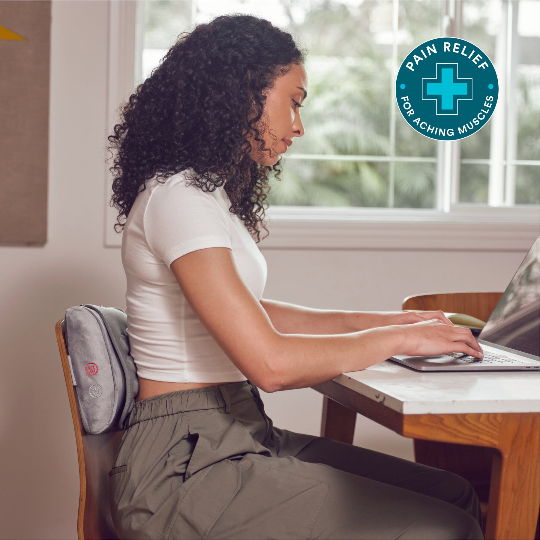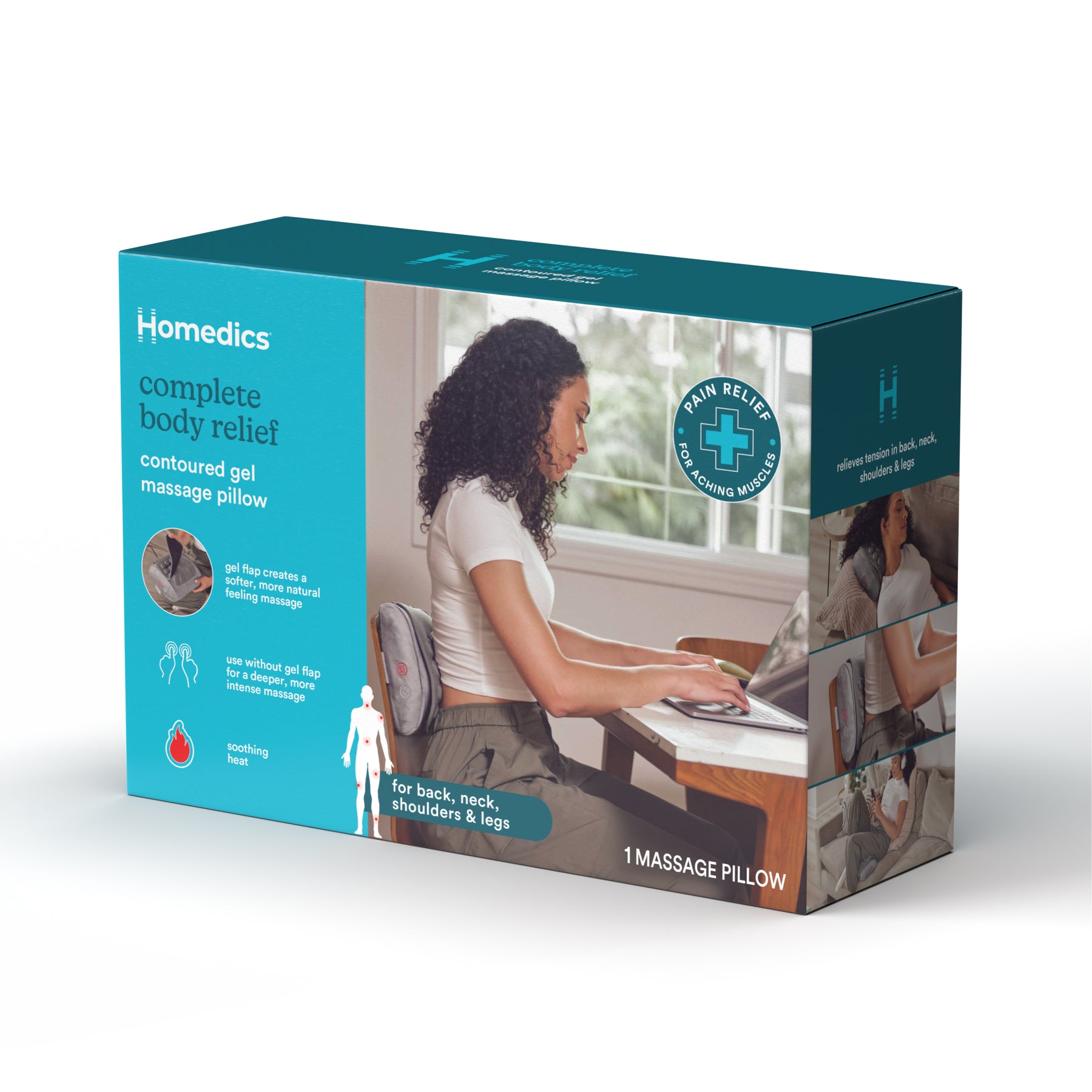 Soothe sore muscles with relaxing gel massage and contoured support for ultimate comfort at home or on the go.
