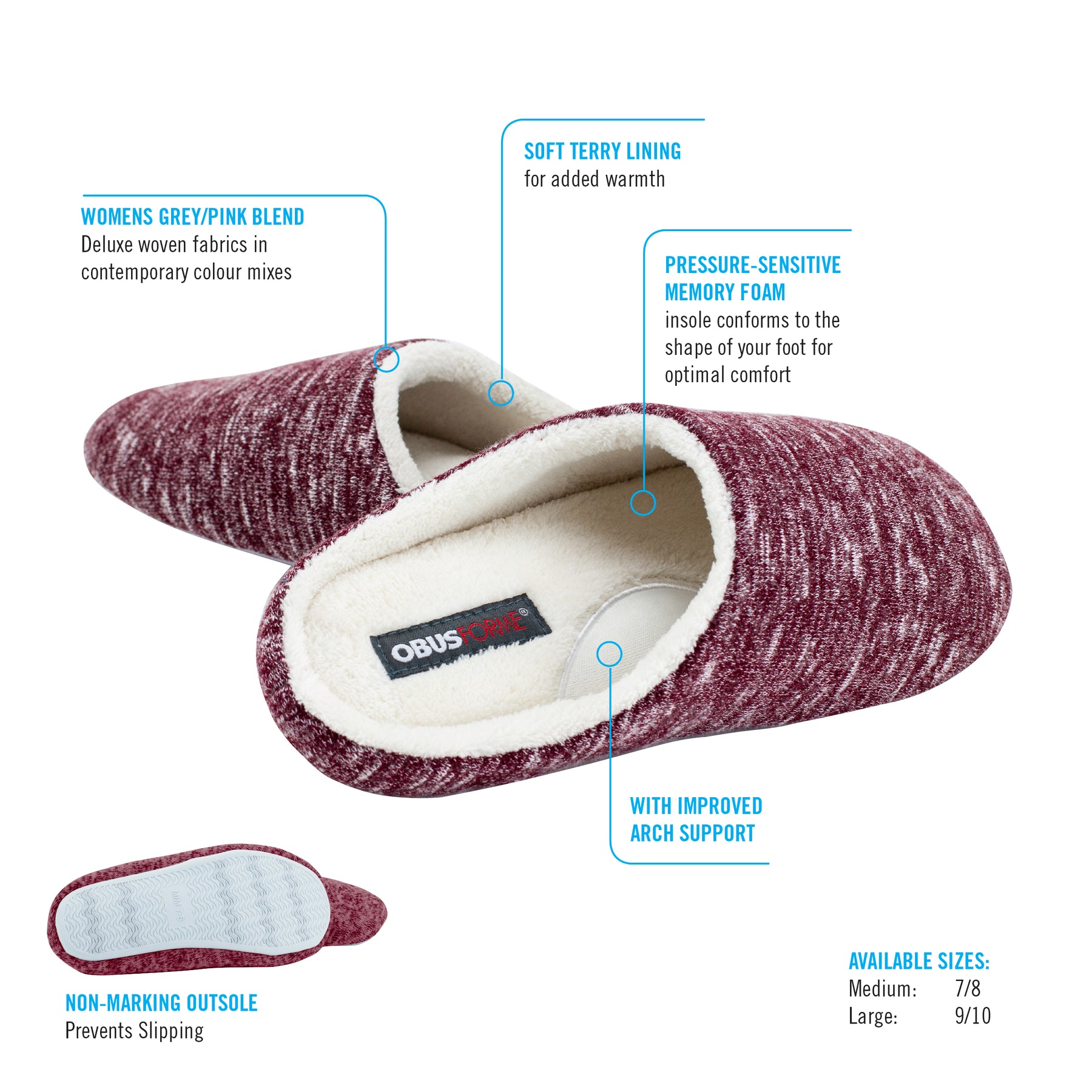 Arch support for extended comfort, Pressure-sensitive memory foam slipper insole