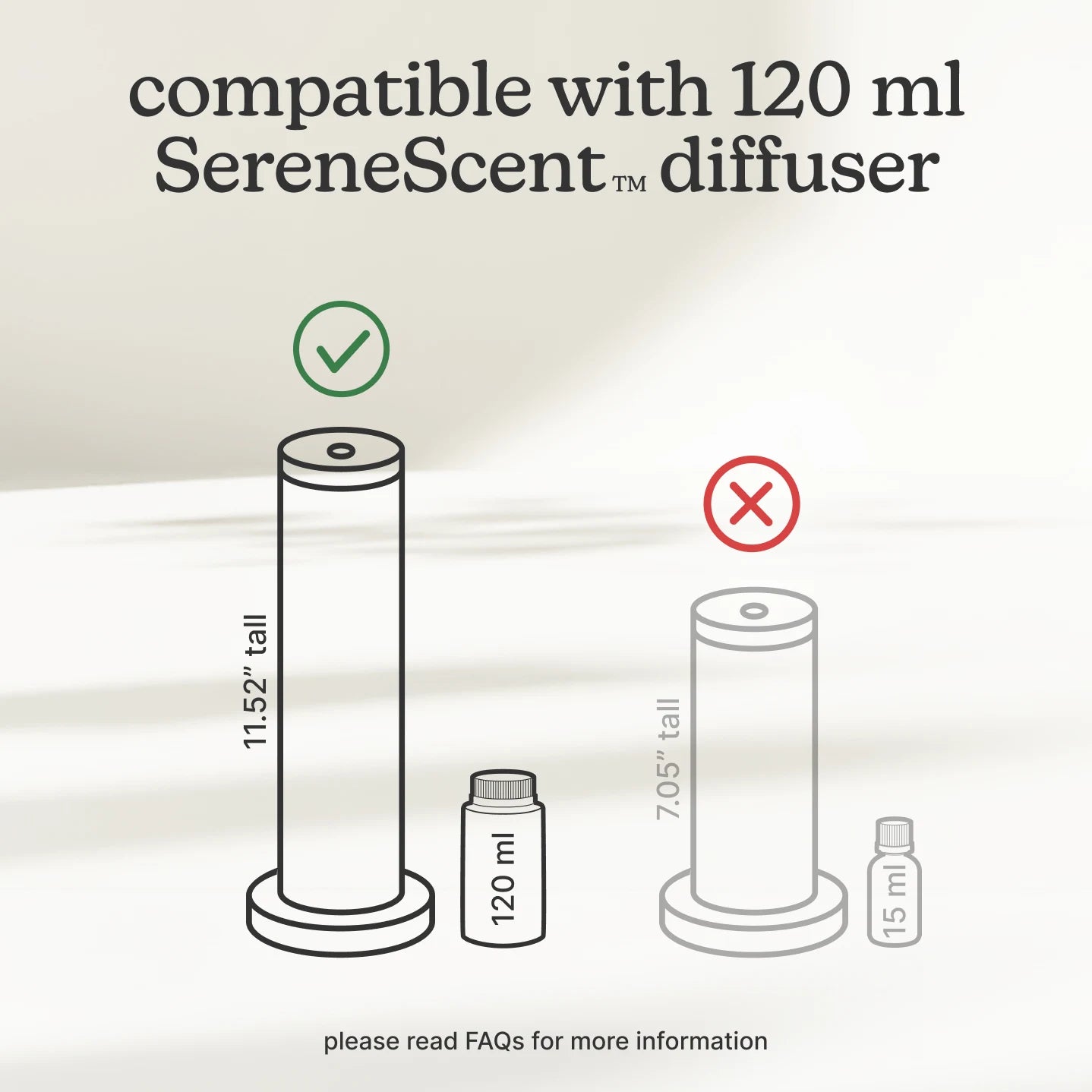 Compatibility chart for SereneScent™ diffuser with two cylindrical containers, one tall and one short.