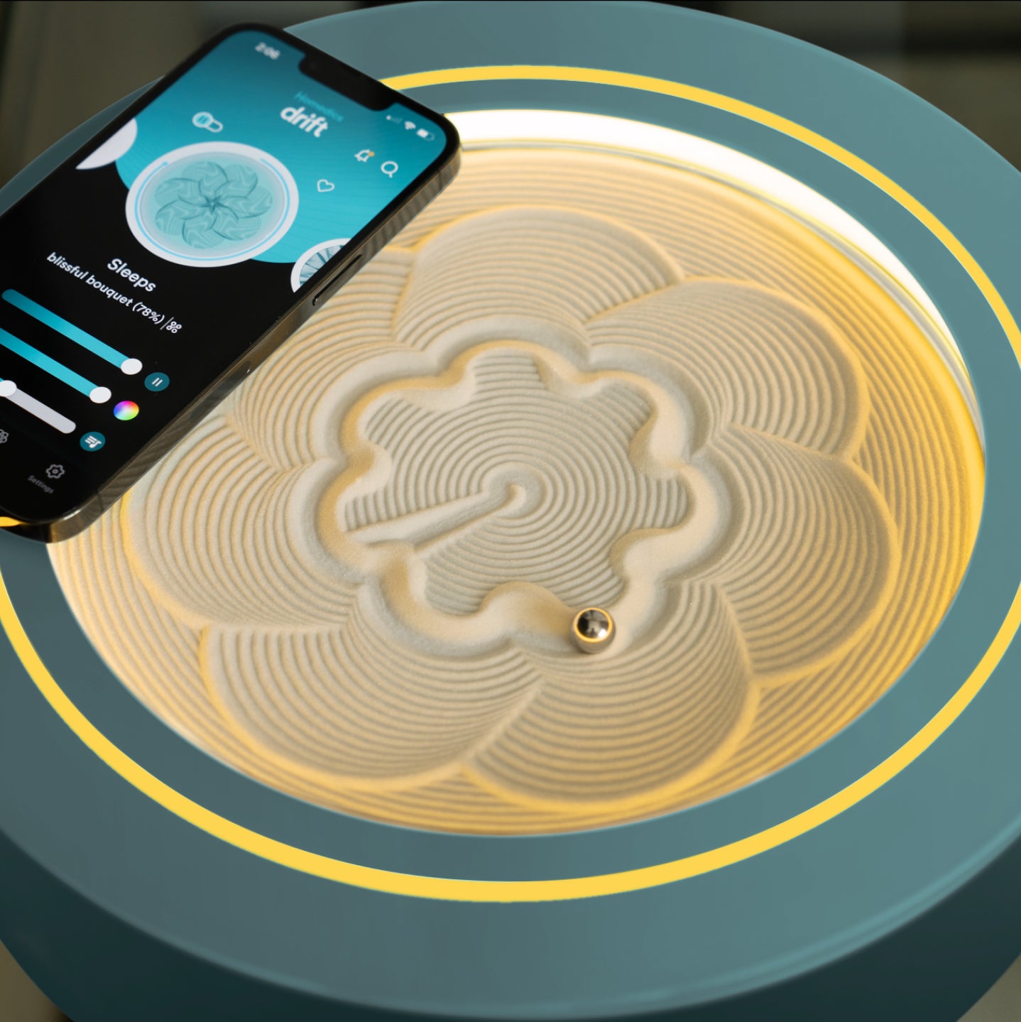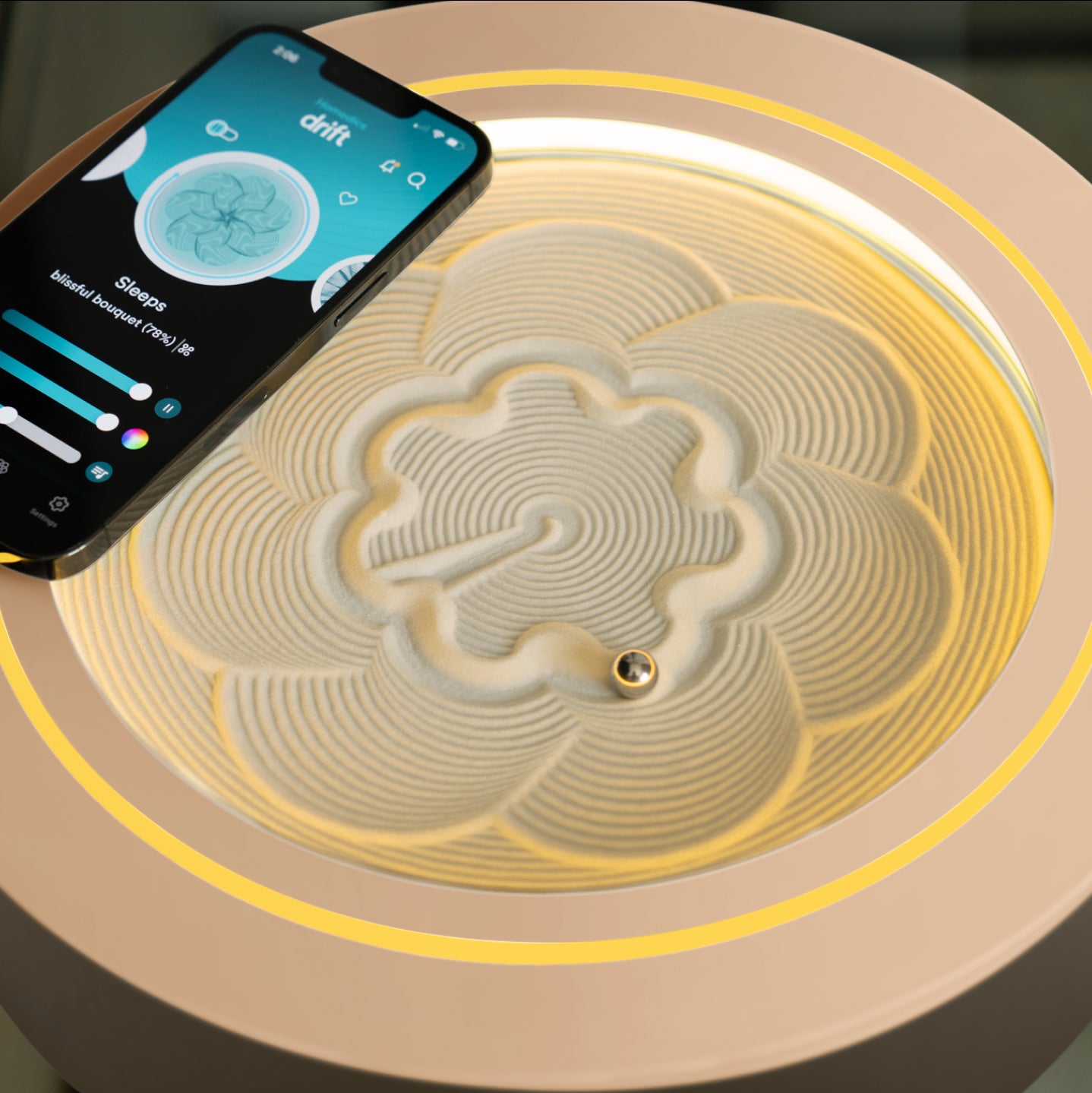 drift is our new kinetic sandtable for passive wellness. As it creates mesmerizing patterns, it gives you a chance to pause and find inner peace.