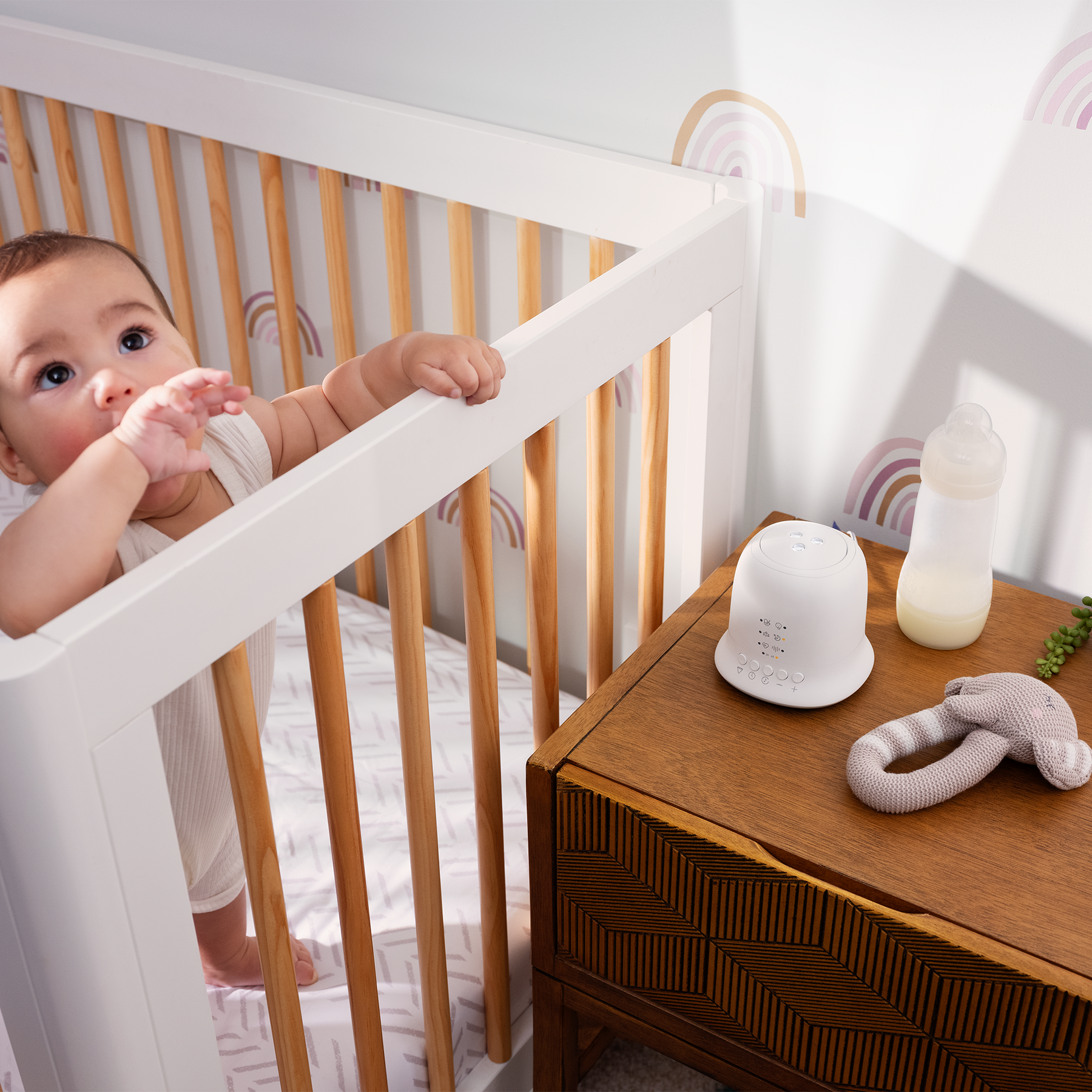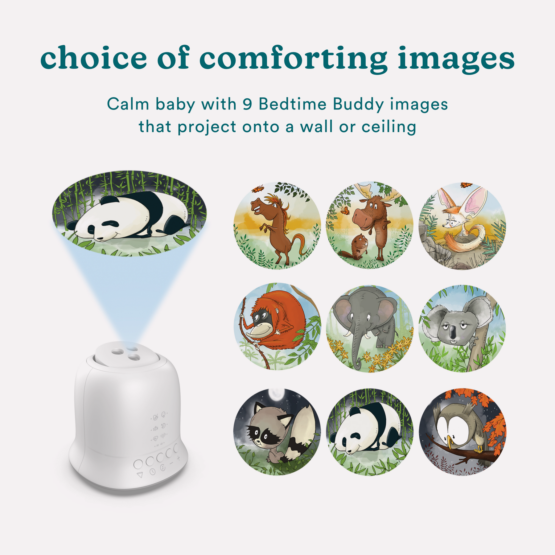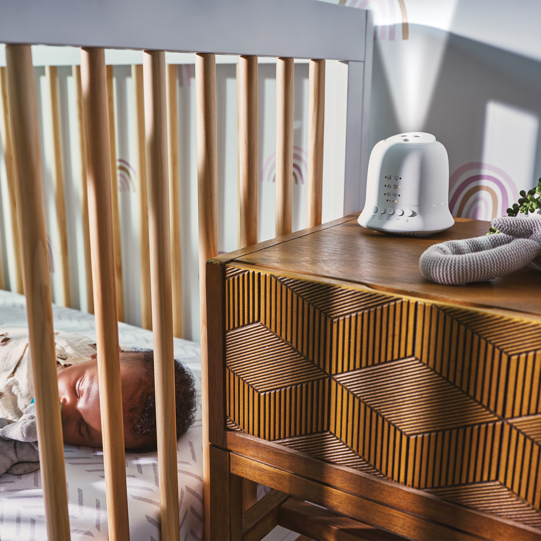 The Homedics Homedics SoundSpa Lullaby with Sounds & Projection offers 6 soothing sounds and 9 soft glow and friendly images help your baby fall asleep.
