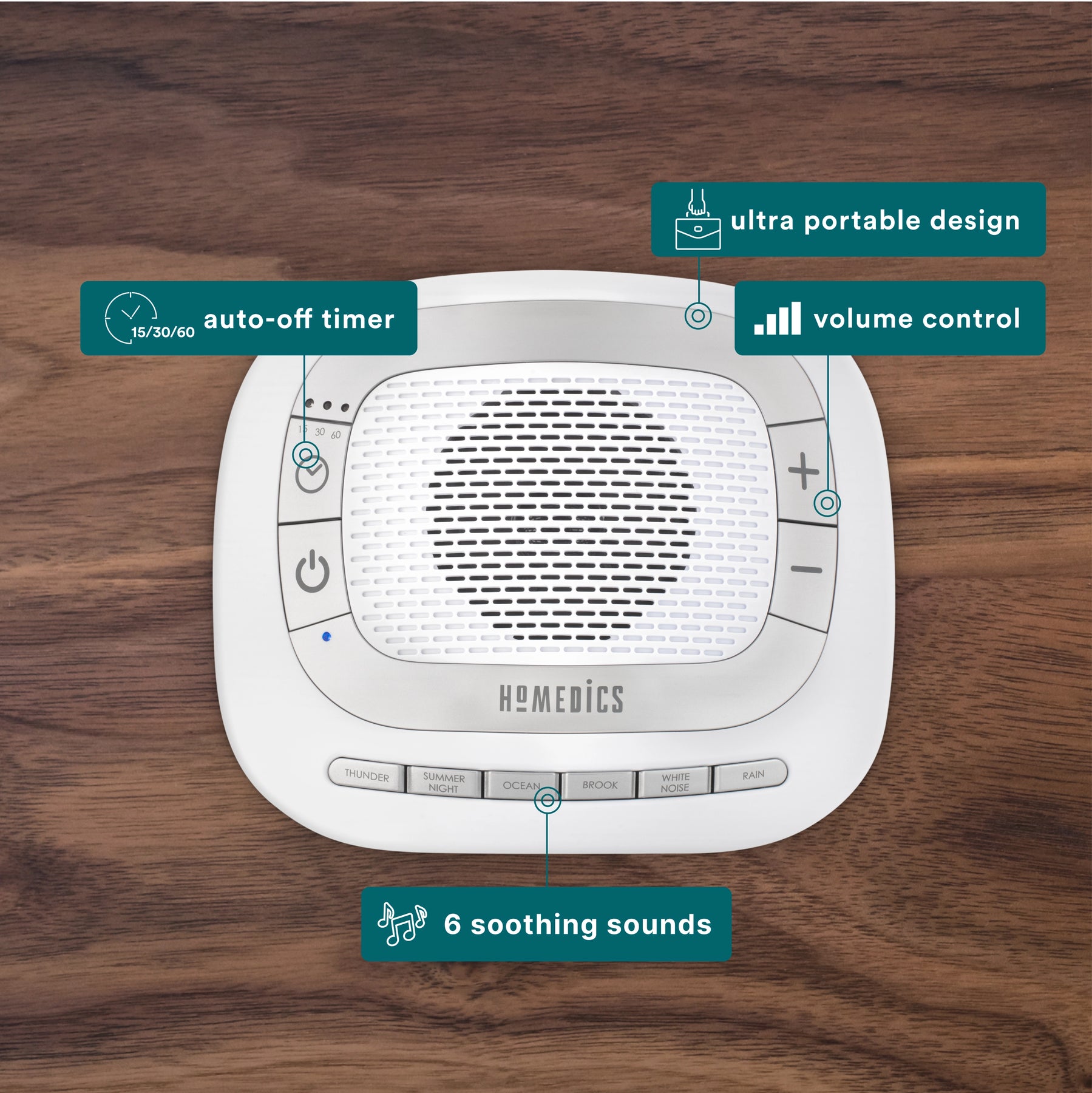 Use the Homedics SoundSpa Rejuvenate portable sound machine to create a peaceful sleep environment, fall asleep faster, and wake up completely rested.