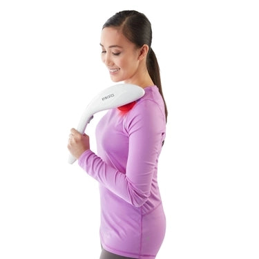 Cordless Percussion Body Massager with Soothing Heat - woman using handheld massager on shoulder - HoMedics Canada