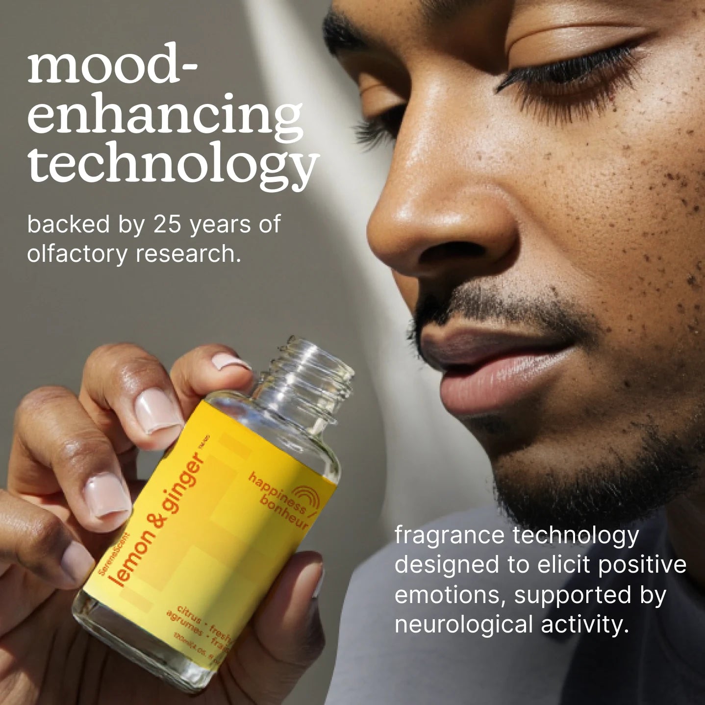 Our fragrances are crafted with natural fragrance design technology and essential oils, backed by over 25 years of research and supported by fMRI brain studies. Specific scent molecules have been shown to trigger positive emotions like energy, calm, and happiness.