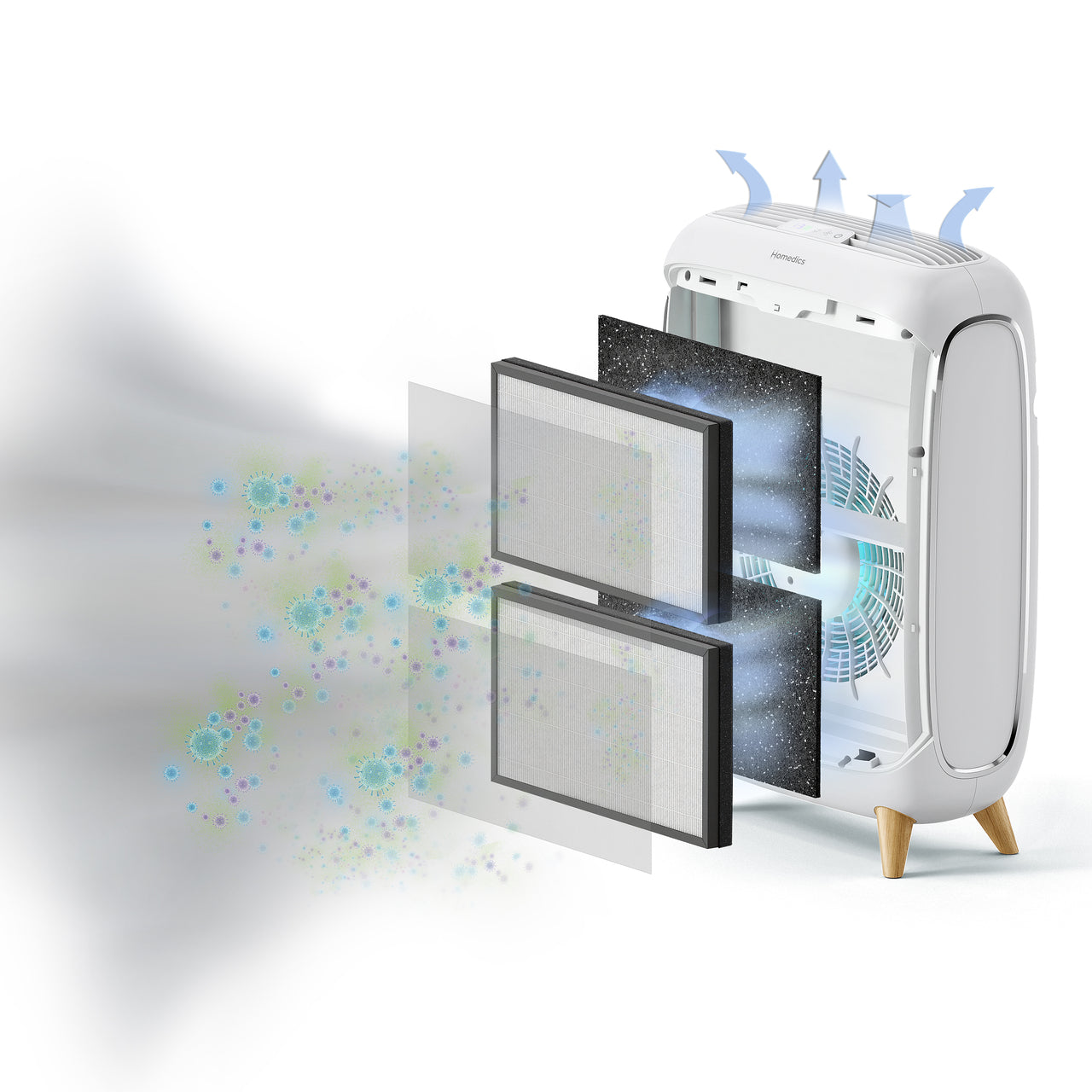 Breathe cleaner air with advanced 3-in-1 filtration—captures allergens, dust, and odors for a fresher, healthier home environment.