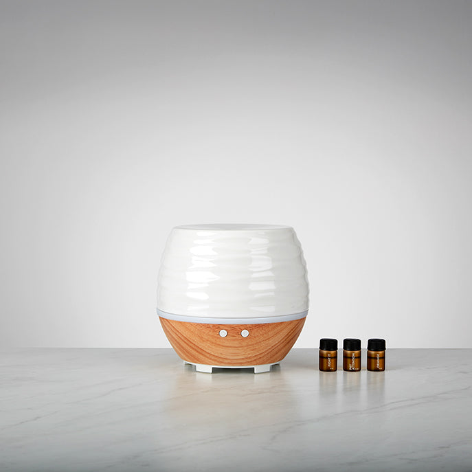 The Ascend diffuser comes in 2 neutral, space-friendly colors of gray or white. The modern design features a rounded shape and textured cover, making it great for any office or living space with a modern flair. Ascend also uses ultrasonic, high-frequency technology to convert the water and essential oil into a fine mist that is dispersed into the air evenly, delivering natural aroma to enhance your mood, plus soothing humidity to alleviate dry air that can negatively affect your comfort.