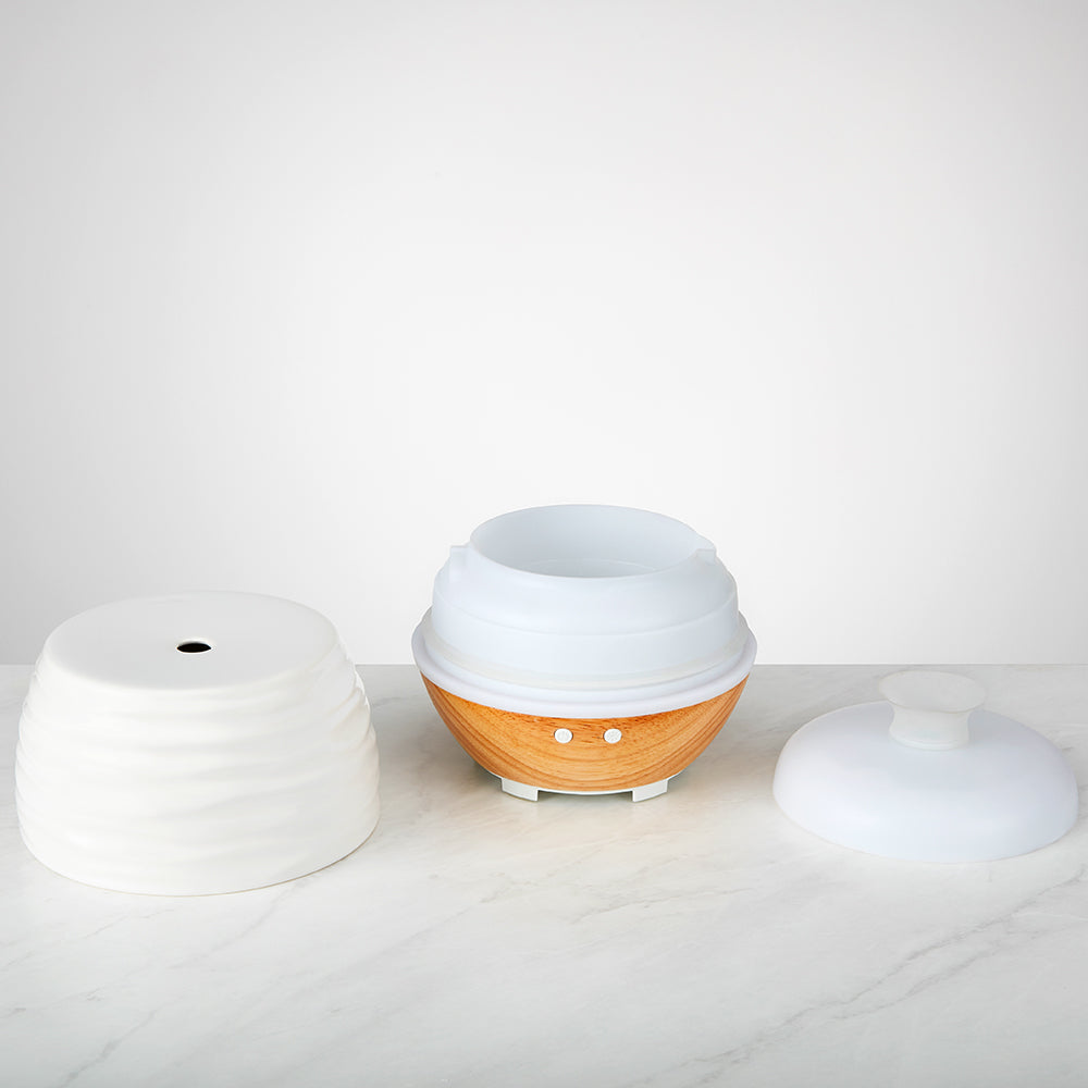 Open your senses with the Ellia Ascend Ultrasonic Essential Oil Diffuser. Simply add water and up to 7 drops of your favorite essential oil, and let the natural aromas fill your home or work area. The beautiful, flowing wave pattern and natural ceramic and wood materials complement nearly any decor. The mist and light features give your home or office a relaxing ambiance. With a mist delivery of up to 6 hours continuously or 12 hours intermittently, you can enjoy the soothing color-changing light and your favorite scents without worry.