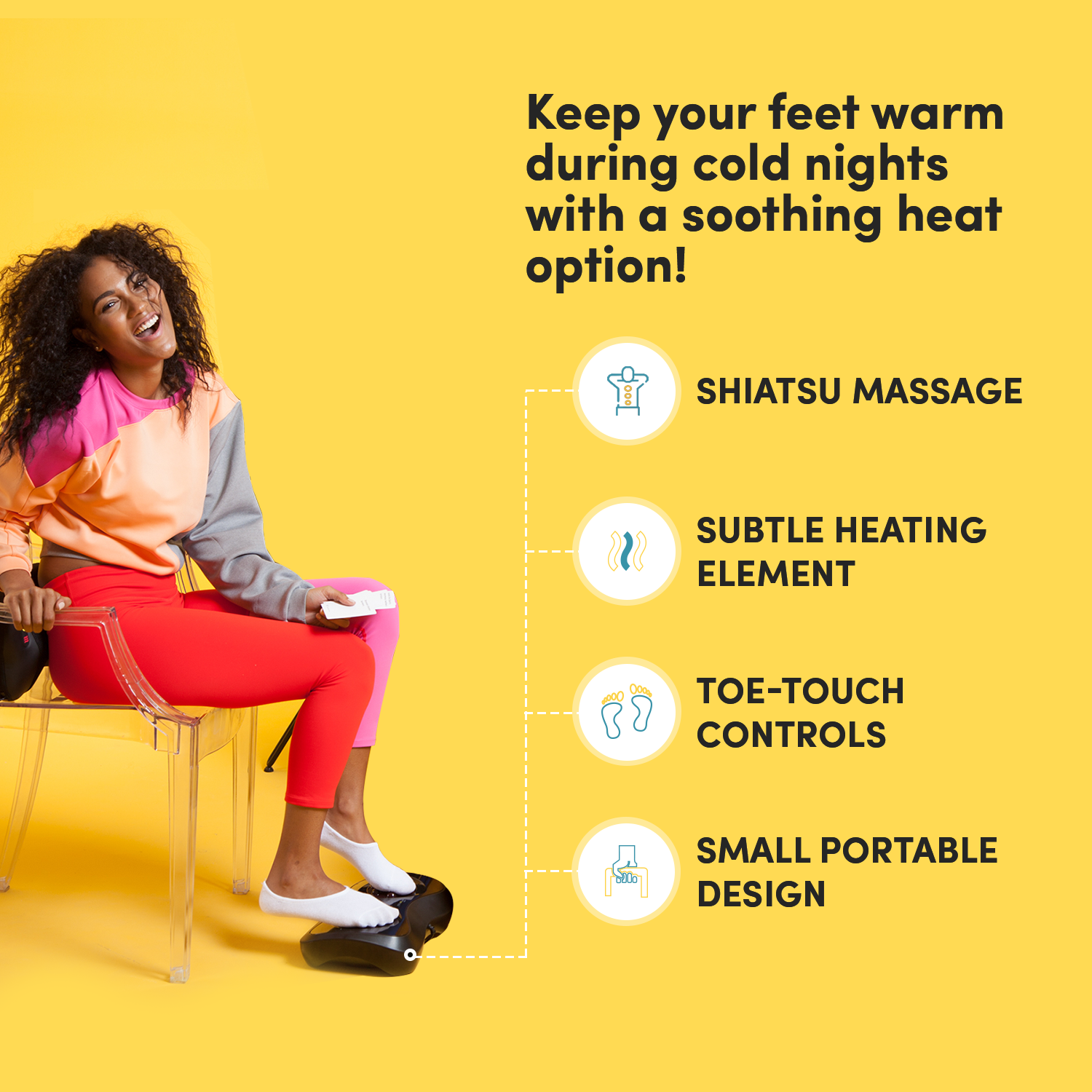 Soothe tired feet with deep-kneading shiatsu massage and relaxing heat for ultimate comfort and relief.